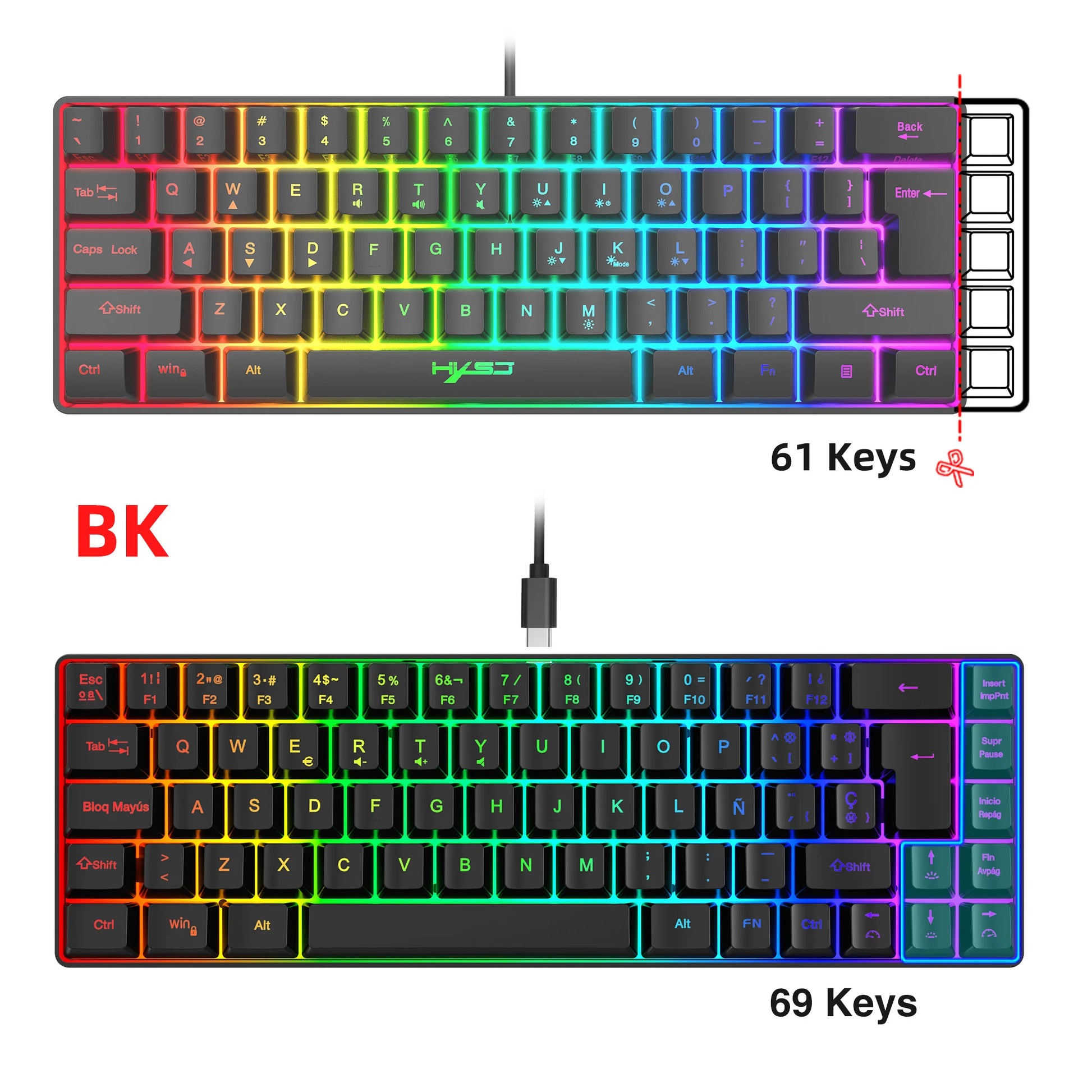 Hot sale!Spanish 69-key RGB backlit wired gaming keyboard, 68% compact design, A must-have gadget for office workers and gamers