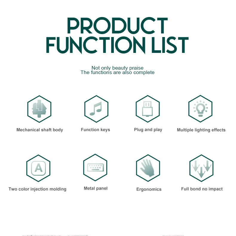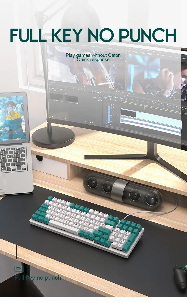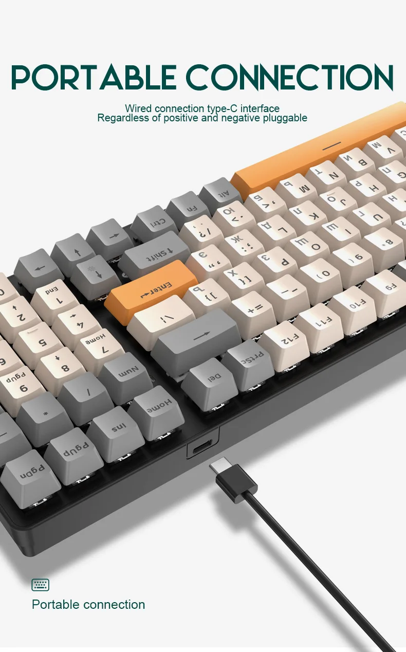 2. The size of the fuselage is simplified, and the optimized 100-key key layout design retains the common keyboard functions as much as possible, while the appearance is both beautiful and practical.