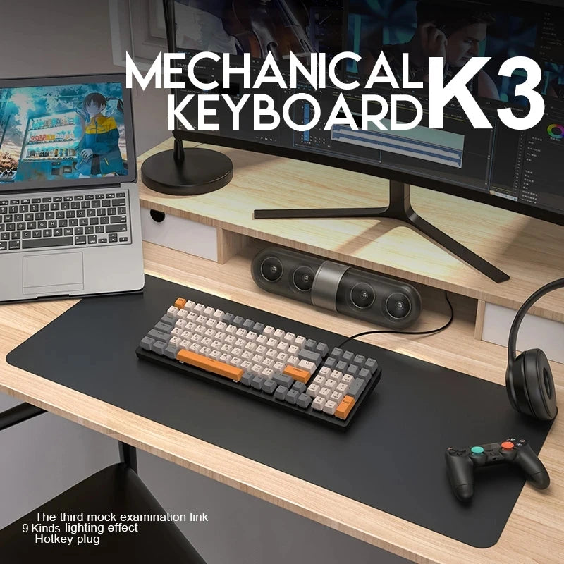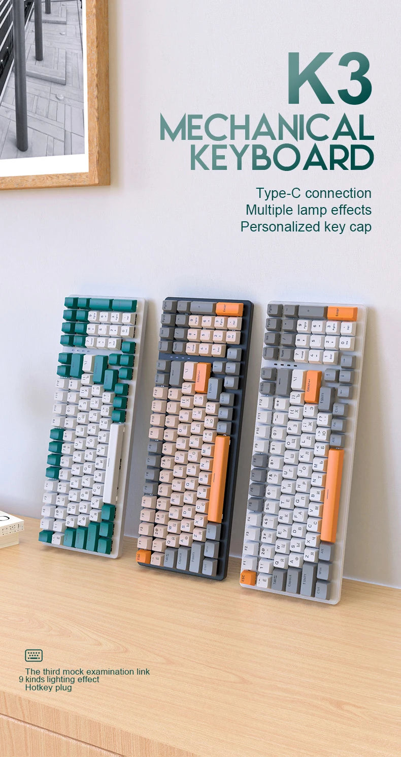 K3 Russian Mechanical Keyboard Red/Blue Switch Type-C RGB 9 Light Model 100 Keys Hot Swap Axis Game Computer Customized Keyboard